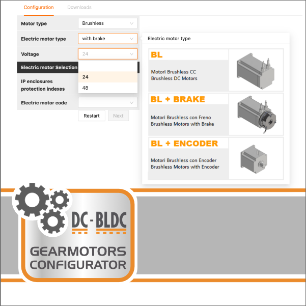 The brake and encoder options are available for the motor BL070.480 220 watt 48V, and BL210.480 660 watt 48V. Furthermore, for the AGV sector, an accessory kit has been developed